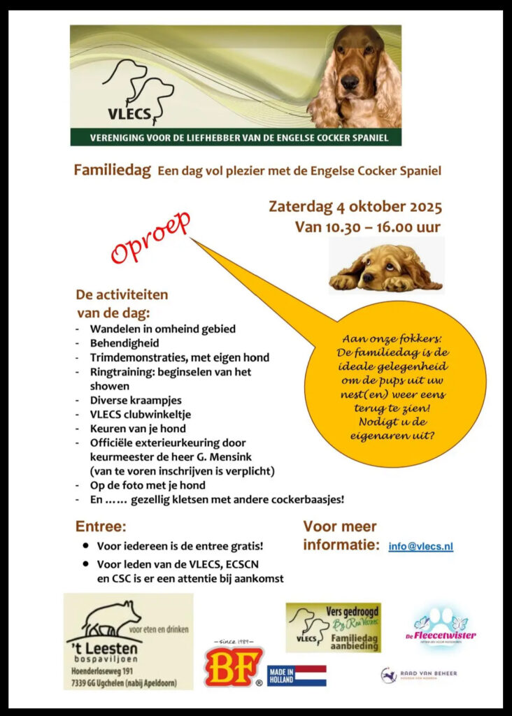 VLECS staat voor een Vereniging voor Liefhebbers van de Engelse Cocker Spaniël, die elkaar ondersteunen en samen genieten van alles wat met dit prachtige ras te maken heeft.